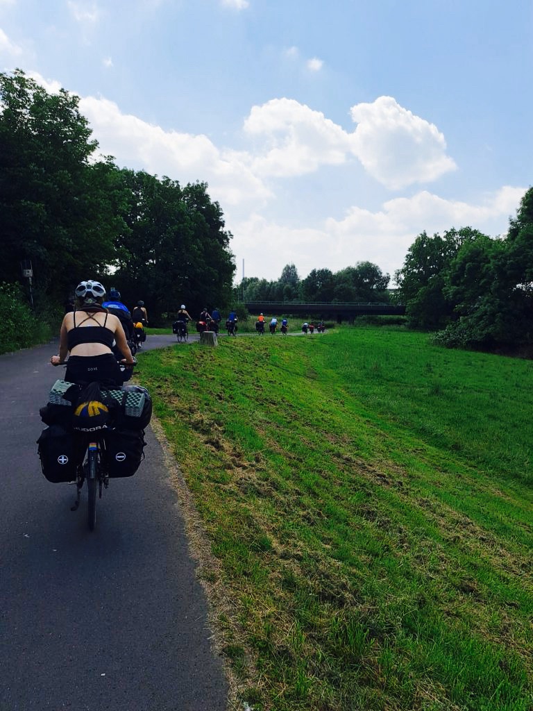 Bei bestem Wetter ging es heute endlich an den Rhein. Unsere heutige Etappe musste ein paar Mal wegen Überschwemmungen des Rheins geändert werden. Außerdem durchfuhren wir die Großstädte Düsseldorf und Köln. Das war phasenweise eine besondere Herausforderung, aber wir haben es als Kolonne super gemeistert. Dafür mussten wir uns natürlich auch belohnen. Mit Blick auf den Rhein und einem Eis in der Hand genossen wir die Stille und das Rauschen des Wassers. Besonders hervorzuheben ist, dass wir den heutigen Tag erstmalig ohne Panne geschafft haben.